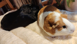 Ils sont totalement habitués aux chats, ils dormaient même avec eux, leur cage restant toujours ouverte ![]()