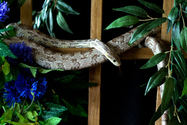 C'est une couleuvre des blés (Pantherophis guttatus) d'environ une dizaine d'années.