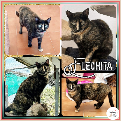 FLECHITA a été récupérée avec ses frères et sœurs alors qu'ils ont été abandonnés par leur propriétaire. Celui-ci, locataire, les a laissé dans la maison qu'il louait. Le propriétaire qui souhaitait louer à nouveau la maison ne les nourrissait pas en espérant qu'ils partiraient.
