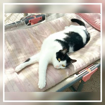 Elle apprécie aujourd'hui de se mettre au soleil et de manger des friandises.