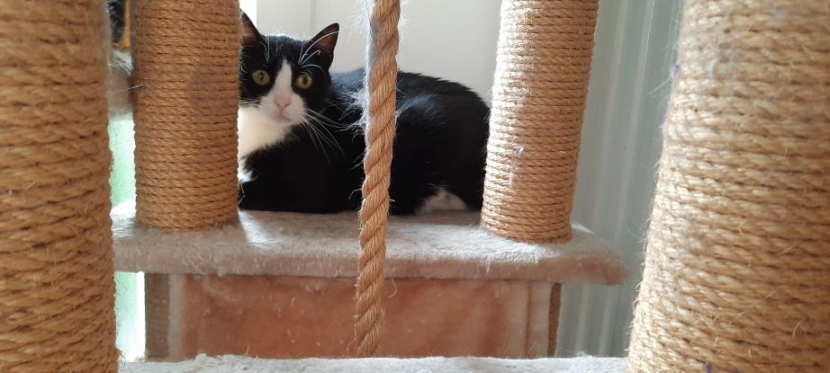 Moore est une chatte très craintive et qui n'accepte pas du tout le contact avec les humains.