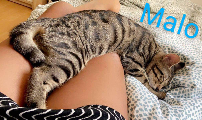 Malo est le chaton par excellence, câlin, très câlin, joueur et aimant dormir sur ses humains, il saura facilement vous faire craquer, vous rendre heureux et vous faire rire