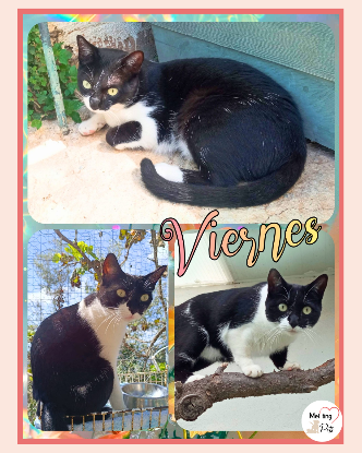 VIERNES est une petite chatte qui a été récupérée dans une école.