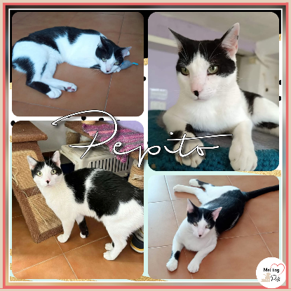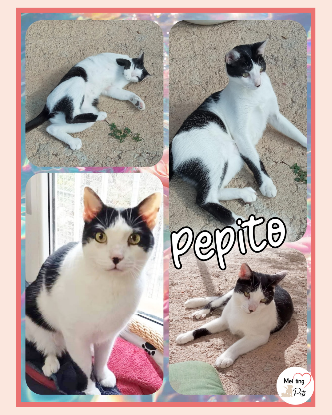 PEPITO est un chat qui a vu son monde basculer du jour au lendemain. Sa propriétaire est décédée et il a eu très peur de voir tous ces inconnus dans sa maison. Il a sauté du balcon pour se sauver. Il a survécu mais a du être opéré de sa patte arrière droite. Il s'est très bien remis et attend maintenant sa nouvelle famille pour la vie.