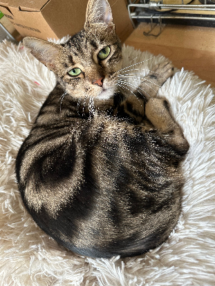 Je suis une jeune chatte calme et tranquille. Et, maintenant que mes rejetons sont grands je tiens à conserver ce calme autour de moi !
