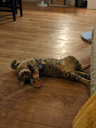 Eowyn est une petite chatte, de premier abord, toute timide pour qui le travail de sociabilisation a été très long mais la patience paie enfin !