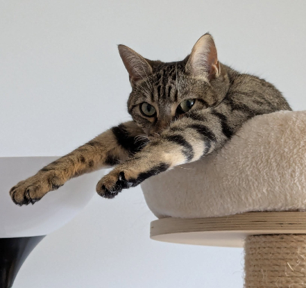 Eowyn s'entend extrêmement bien avec les autres chats, son approche envers eux est très douce. Elle agit beaucoup par mimétisme donc une famille avec un chat très sociable serait même un gros avantage pour elle.