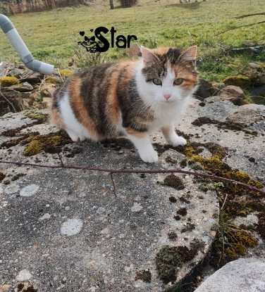 STAR a été prise en charge avec son frère STAN alors qu'ils avaient environ 5 mois. Ils vivaient dans le jardin d'un monsieur âgé qui ne pouvaient plus s'en occuper suite à une maladie.