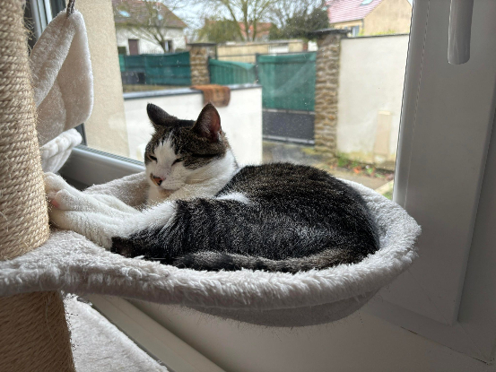 Il nous suit partout où on va dans la maison. Vous aimez les chats câlins, proche de vous et joueur, BOSI est le chat qu'il vous faut !