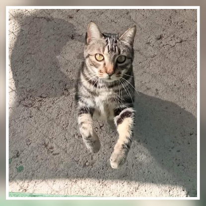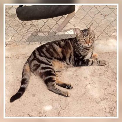CHARRO est arrivé au refuge en même temps que trois autres chats : Donatella, Juaquin et Pirata.