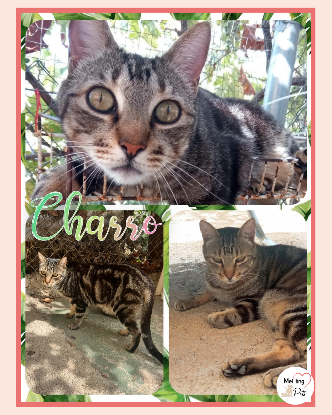 CHARRO est arrivé au refuge en même temps que trois autres chats : Donatella, Juaquin et Pirata.