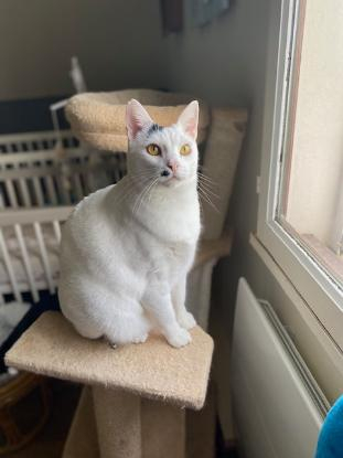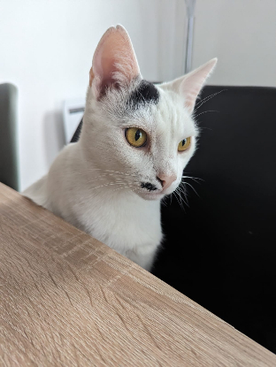 Très avenant, il apprécie les caresses, bien qu'il ait une petite pointe de caractère.