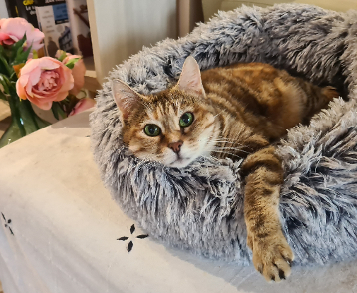 Miette est une très gentille chatte qui est venue s'installer dans le jardin d'une de nos familles d'accueil et n'a plus voulu repartir.