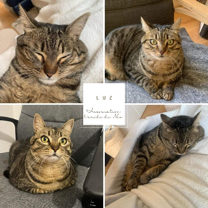 Luz est identifiée, déparasitée interne & externe, stérilisée et est à jour de ses vaccins TCL (Typhus, Coryza, Leucose).