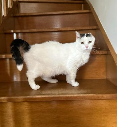 A été retrouvée errante avec un début de lésions cancéreuses à son oreille gauche (ablation de son oreille). Elle faisait la tournée des restaurants/fast food pour se nourrir. Probablement abandonnée car sociable.