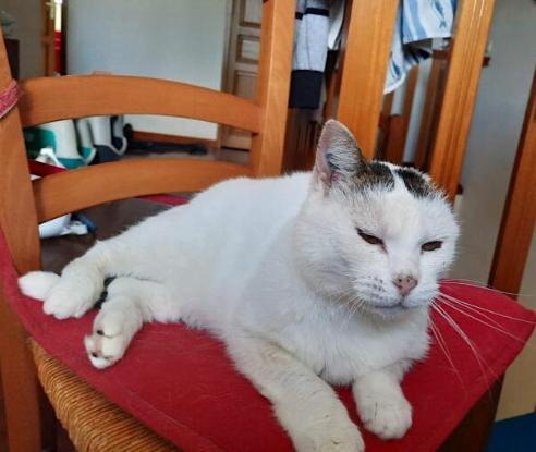 Neige, femelle de 6 ans, calme, douce, gentille et câline. Elle est posée et affectueuse.