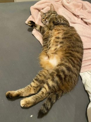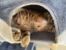 C’est un amour, elle dort souvent dans le lit. Et hormis quand un autre chat l’embête, sinon elle est très calme.