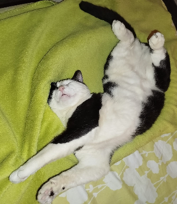 Sanka a, malgré tout, gardé une séquelle de son accident : il a une incontinence fécale partielle qui fait que, parfois, une petite crotte se trouve en dehors de sa litière…