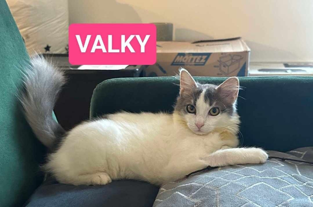Je suis une petite guerrière, j’ai survécu au typhus après avoir été trouvée sur un chantier. Petite beauté aux poils mi-longs et au regard charmeur, Valky n’a pas eu un début de vie facile et aura besoin de patience pour donner pleinement sa confiance à son humain. Elle adore jouer seule ou avec son humain, elle aime bien les caresses et ronronne aussitôt (mais attention, ce petit fauve choisit ses moments).