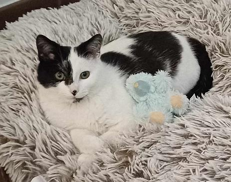 Âgée de 6 mois c est une petite minette tranquille et bien dans ses pattounes. Elle est très caline et c'est une véritable boîte à ronron