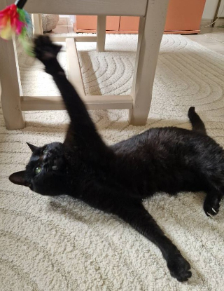 Thétis apprécie le calme de l'appartement, le soleil du matin et se reposer dans son super panier ! Assez câline, Thétis vient au contact pour avoir des caresses.