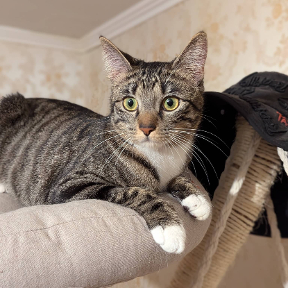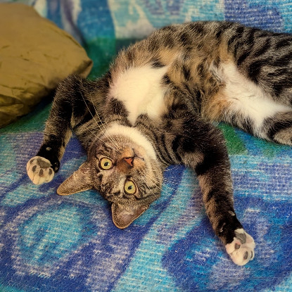 Anya est une chatte hyperactive du haut de ses 1 an , elle aime jouer et courir partout avec ses copains chats, elle est également ok chien.
