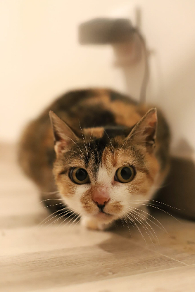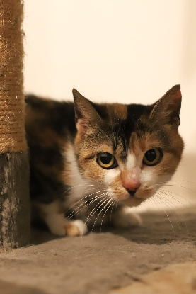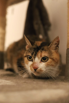 Je suis Pia une jeune femelle tricolore de moins d'un an, et je cherche ma famille pour la vie.
