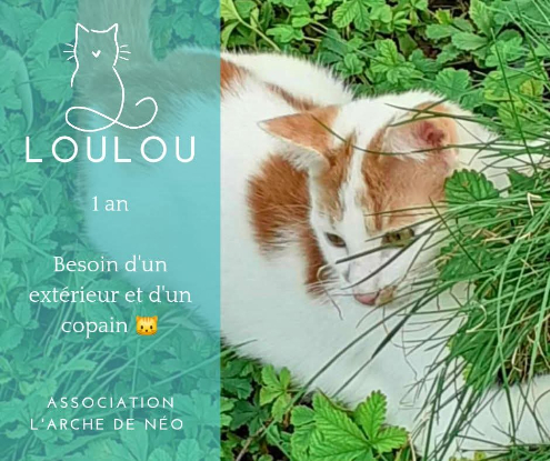Loulou est le frère de Bouba et Lili qui attendent également leur famille. Loulou est habitué à vivre avec d'autres chats, avec un accès à l'extérieur.