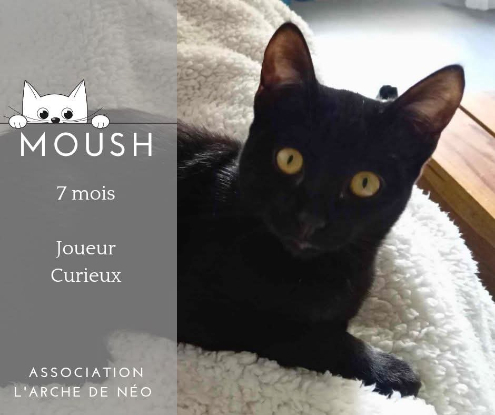 Comme tout grand chaton, Moush est joueur et curieux. Il aime faire la sieste avec les humains, jouer avec les autres chats... il est habitué à vivre à l' intérieur et commence à apprécier les virées en terrasse ?