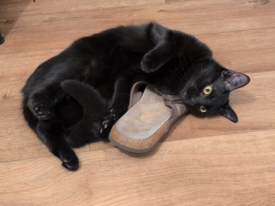 Elle est à l'aise avec d'autres chats et les enfants. C'est aussi une chatte intelligente, qui comprend rapidement où se trouve son bac à litière, où faire ses griffes et... elle mange les restes de pâtée sur le sol qu'elle a laissé, quand on le lui indique !