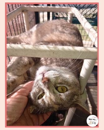 C'est une chatte très affectueuse, sociable et gentille malgré ce qu'elle a pu traverser.