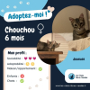 Chouchou est uniquement adoptable avec sa sœur Zouzou. Toutes les deux sont inséparables. Son caractère est adapté à celui de Zouzou, elles vont vraiment bien ensembles. D’ailleurs elles font tout ensemble : des dodos, aux passages à la litière, mais aussi le jeu et même les repas !