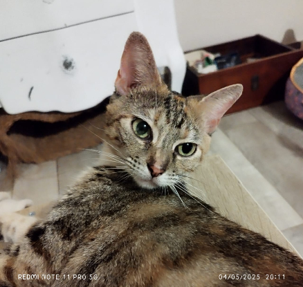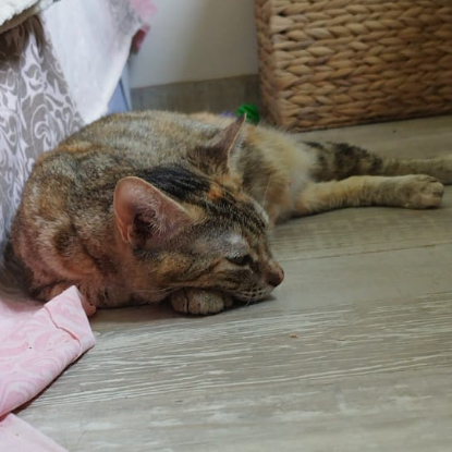 Vaïana (née le 05/02/2024) a été recueillie avec ses quatre chatons : Ava, Aaron, Arya et Ariel, qui sont également à l’adoption.