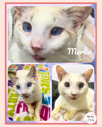 MERLIN a été testé FIV+. Toutefois, cela ne l'empêche pas de vivre normalement ou aux côtés d'autres chats.