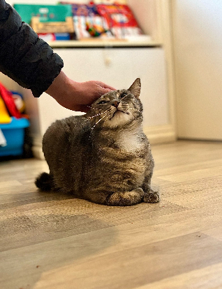 Pris en charge sur un camp désaffecté, il s'est avéré aussitôt être un chat gentil et câlin.