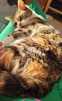 Saya est un ange tombé sur terre. C'est un amour de chatte qui aime les caresses, les bisous et les genoux. Elle n'aime pas les bras par contre. Elle a besoin de calme, de patience, de douceur et de compagnie. Et de beaucoup de câlins.