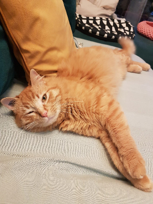 Il aime jouer seul avec les jouets qui trainent, avec ses humains mais aussi jouer avec les autres chats. Il s’est entendu très rapidement avec le chat de 4 ans de sa première famille d’accueil, et aimerait bien être copain avec la minette de sa FA actuelle qui ne le voit pas vraiment de cet œil là. Il était aussi super copain avec les minous qui habitaient sur le terrain du monsieur qui l’a retrouvé après son mois de goguette, nous pensons donc qu’il faut impérativement qu’il vive avec un ou plusieurs autres chats sociables pour être heureux.
