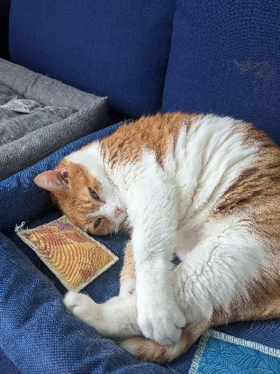 1er arrêt au rayon alimentation : très important pour Babou, ne t'avises pas de rentrer à sec, tu risques un putsch, une destitution, un bannissement ! Babou est fan de pâtée, et glouton. Il peut vomir à manger trop vite. Quelques aménagements sont à prévoir : la gamelle anti-glouton et/ou plusieurs repas par jour. Il est au régime et les petites portions quotidiennes sont adaptées pour contrôler sa ration quotidienne. Inutile de faire des provisions pour un congénère, Babou est mieux sans autre chat.