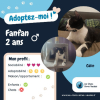 Fanfan est adoptable sous contrat associatif, et certificat d’engagement et de connaissance.