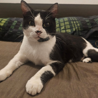 Nous vous présentons Fanfan, un chat plus que formidable. Fanfan est un amour de chat, aussi doux qu’un agneau, extrêmement gentil et accueillant. Fanfan c’est le genre de chat à vous faire la fête quand vous rentrez à la maison. Le genre aussi à vouloir passer du temps avec vous pour flâner, faire des siestes. Il est aussi très curieux, rusé et intelligent. Fanfan sait très bien attraper sa friandises dans une gamelle ludique. C’est un chat plein d’amour, qui a hâte de trouver sa famille adoptive.