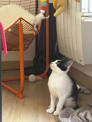 D’abord très timide, j’observe chaque mouvement avec précision et écoute chaque bruit avec mes grandes oreilles. Je me cache encore un peu mais en réalité j’adore jouer et surtout j’adore les câlins !