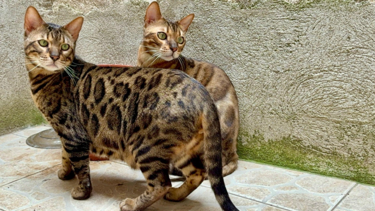 Le Bengale est une race énergique, curieuse et joueuse, qui a besoin de stimulation, d'interaction… et d’espace extérieur sécurisé pour se dépenser. Trevor et Topaze ne font pas exception : ils aiment jouer, grimper, explorer, et ont un goût prononcé pour l’eau ? !
