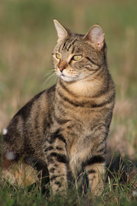 Shenzi est un chat Femelle, type Européen, robe tabby marbré brun, poil court.