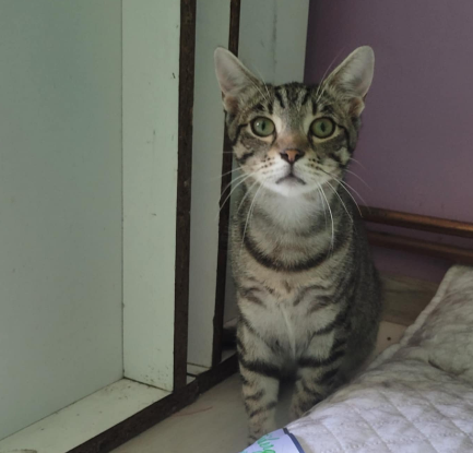 Depuis qu’il a été trouvé dans la rue, il vit dans une famille d’accueil qui lui laisse le temps de s’habituer. Et il fait déjà des petits progrès : il reste dans la même pièce, il vous suit du regard, ou même à distance. C’est sa manière à lui de dire qu’il commence à être curieux. Meowrice s’entend bien avec les chats et les enfants, nous n’avons pas connaissances de ses ententes avec les chiens.