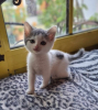 Chaton femelle, type Européen, coloris blanc et gris. Née le 18 avril 2025