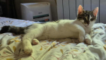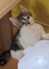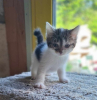 Chaton femelle, type Européen, coloris tigré et blanc. Née le 18 avril 2025