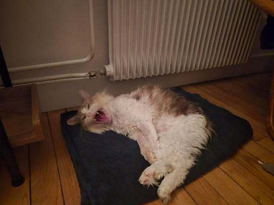 Malgré tout il mérite vraiment de trouver un foyer pour terminer sa vie entouré de chaleur, d'amour, de soins et de pâté !