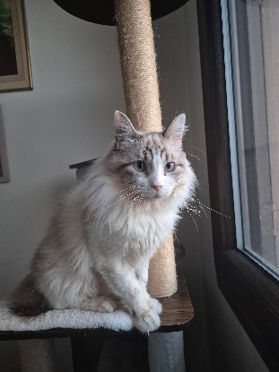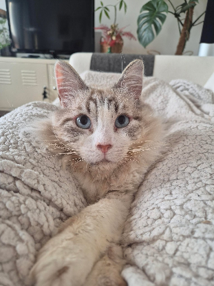 Clarence est un amour de chat, très gourmand et câlin. Un gentleman aux grands yeux bleus et à la fourrure soyeuse qui aime être brossé. Il a ses moments de folie où il joue et court dans tous les sens après sa balle préférée. Il a un tempérament calme mais peu de patience. Il aime être porté et vient sur les genoux quand il en a décidé.