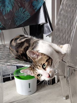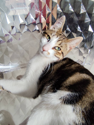 Ice Cream est un matou adorable qui a vaillamment accepter les soins et les séances de rééducation.