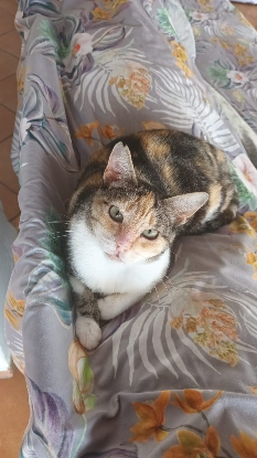 CLOE est une petite chatte très affectueuse, sociable et douce.